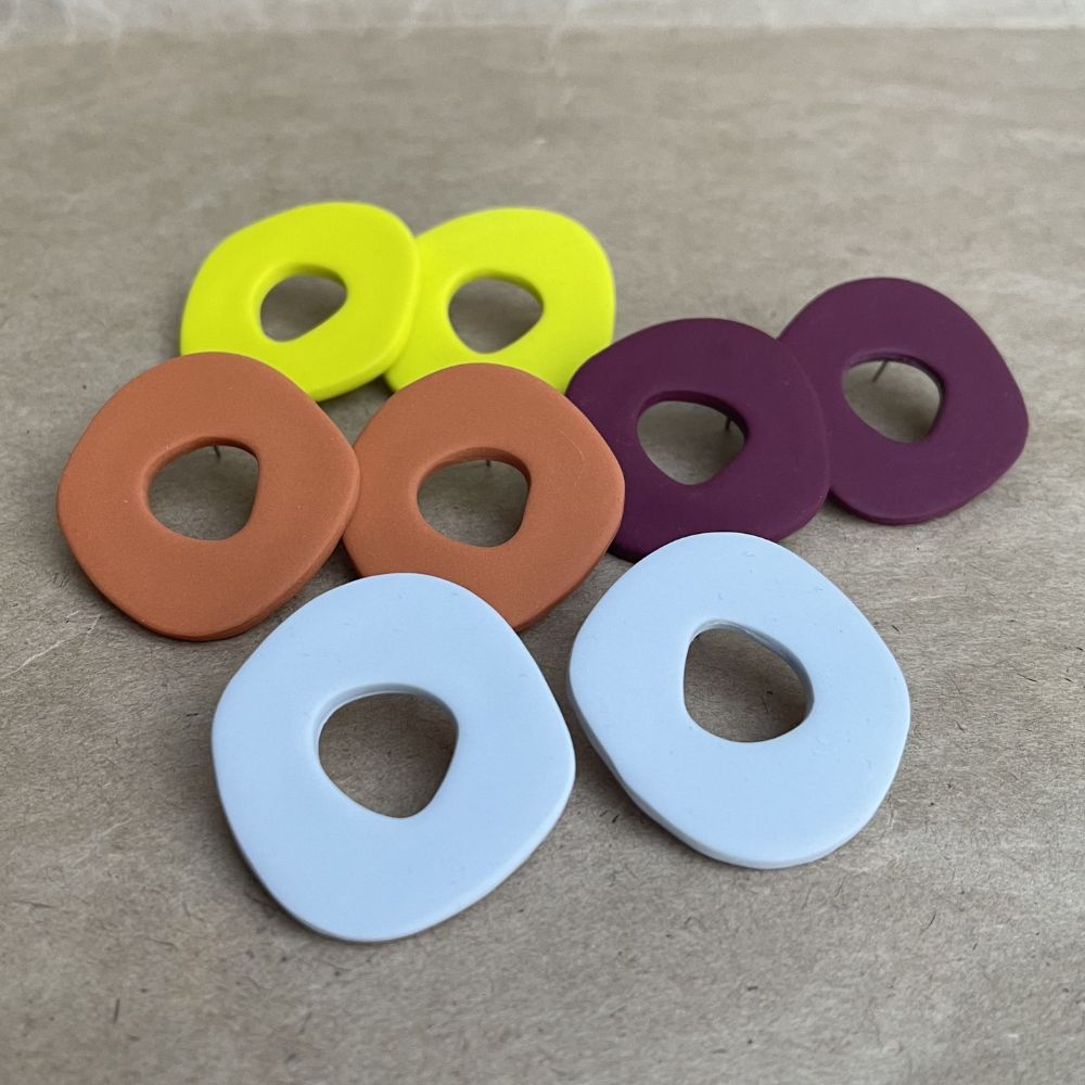 Βελτιώστε το στυλ σας με αυτά τα πολύχρωμα και χειροποίητα σκουλαρίκια από πολυμερικό πηλό. Εξαιρετικά ελαφριά και σχεδιασμένα με μινιμαλιστικό κυκλικό σχήμα, αυτά τα σκουλαρίκια προσφέρουν κομψότητα και άνεση. Τα εντυπωσιακά χρώματα και η ευκολία στη χρήση τους, τα καθιστούν απαραίτητη προσθήκη στη συλλογή σας.