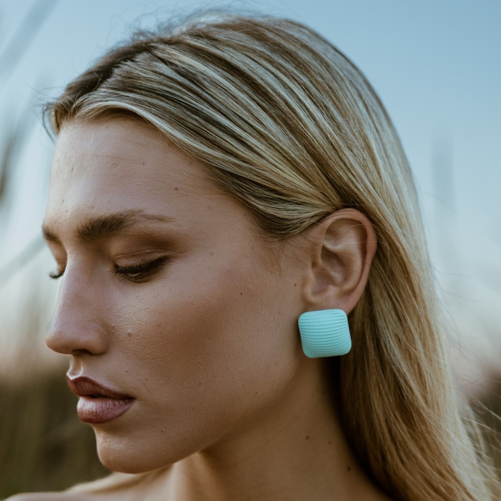 Με σχήμα τετραγώνου και απαλά στρογγυλεμένες γωνίες, αυτά τα σκουλαρίκια ξεχωρίζουν χάρη στην τρισδιάστατη μορφή τους και τη λεπτή γραμμική υφή.