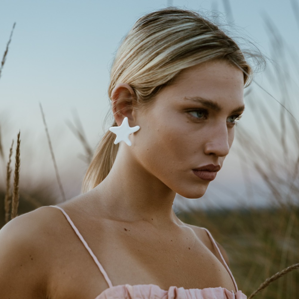 Ένα σύμβολο καλοκαιριού, με καθαρές γραμμές και διακριτική παρουσία. Ο μίνιμαλ σχεδιασμός τούς δίνει μοντέρνο χαρακτήρα, ενώ το σχήμα παραπέμπει στον αστερία χωρίς να τον αντιγράφει κυριολεκτικά.