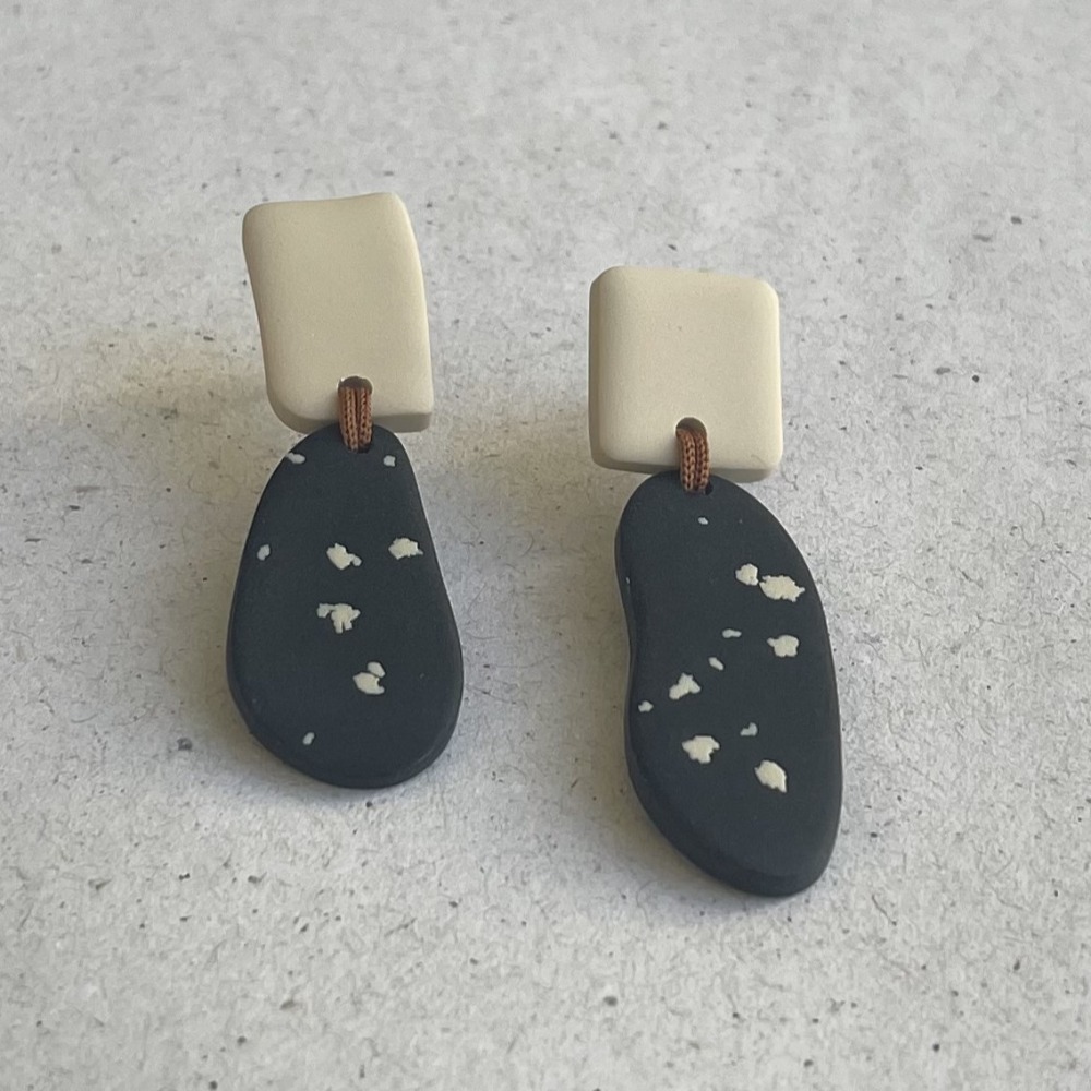 Μοντέρνα, ανάλαφρα και με χαρακτήρα, αυτά τα σκουλαρίκια αποτυπώνουν την ουσία του handmade design. Οι speckled λεπτομέρειες στο λευκό στοιχείο δημιουργούν μοναδικότητα σε κάθε ζευγάρι.