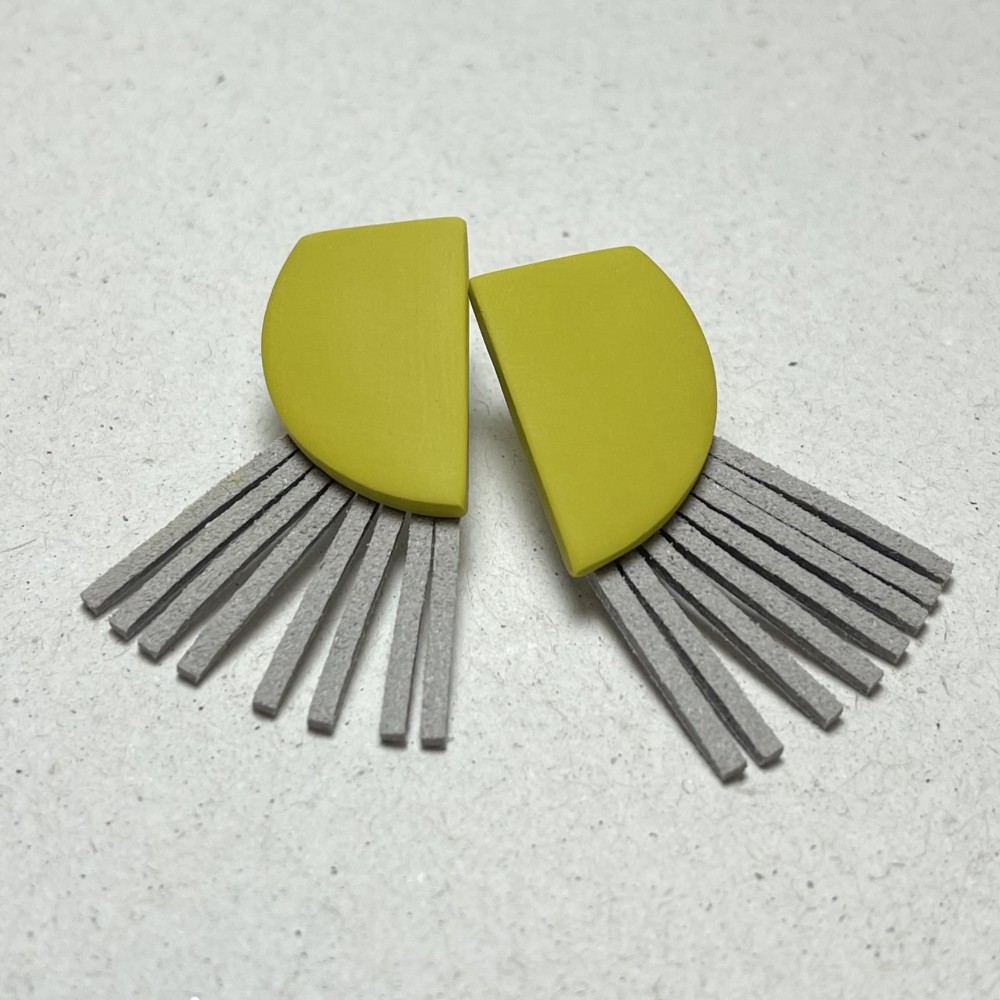 Δώσε ζωή στο outfit σου με αυτά τα μοναδικά, χειροποίητα σκουλαρίκια από πολυμερικό πηλό! Τα bold χρώματα, ο μοντέρνος γεωμετρικός σχεδιασμός και η παιχνιδιάρικη σουέτ τρέσσα τα κάνουν να ξεχωρίζουν. Φόρεσέ τα από το πρωί μέχρι το βράδυ — ανάλαφρα, άνετα και γεμάτα προσωπικότητα.