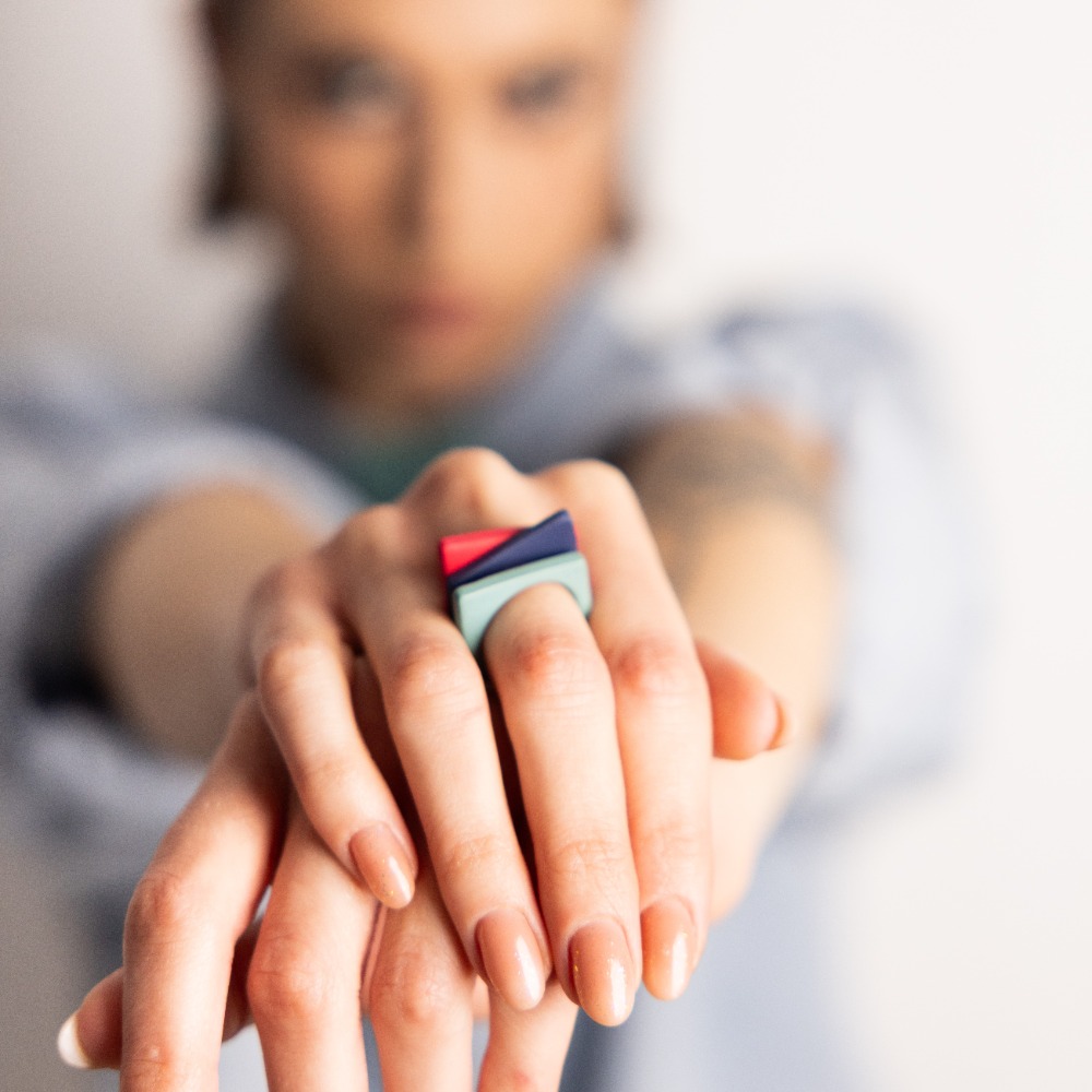 Ένα σετ από τρία ίδια δαχτυλίδια, σχεδιασμένα για να φοριούνται μαζί ή και μόνα τους.